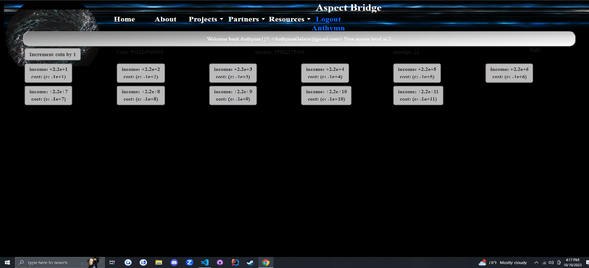 This project represents the backbone of any idle clicker game. It is a functional "incremental gain" simulator with prestige. This game could have essence if given a little art.
